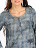 Легкая хлопковая блуза свободного покроя. Круглая горловина. На полочке планка-застежка на пуговицах. Длинные рукава с манжетами на пуговицах. Декорирована вышивкой в тон.