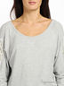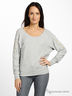Эластичная блуза свободного кроя с круглым глубоким вырезом спереди и сзади. Рукава украшены стразами и бисером.