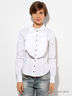 Стильная блуза с длинными рукавами и отложным воротником. Модель выполнена из качественного материала привлекательной расцветки и дополнена застежкой на пуговицы спереди, а так же декоративной рюшей. Отличный вариант на каждый день.