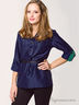 Яркая блуза из атласного материала. V-образный вырез горловины. Застежка на пуговицы. Рукава 3/4 декорированы контрастными патами. На груди два накладных кармана. Будьте всегда стильной!