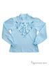 Блуза из трикотажной ткани, воротник стойка, украшена вышивкой в стиле "гжель" и заваязочками. Низ рукавов стянут тонкой резиночкой и образует не большую рюшу.