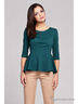 Стильная блузка модного кроя. Изделие с округлым вырезом горловины и рукавами 3/4. Дополнено съемным воротником контрастного цвета и баской. Модель выполнена из высококачественного материала приятной расцветки. Отличный вариант для повседневного использования.
