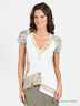 Детали: V-образный вырез горловины, короткий хлопковый рукав, контрастные вставки, ассиметричный подол, множество декоративных элементов