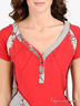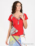 Детали: V-образный вырез горловины, застежка на две пуговицы на полочке, короткий рукав, хлопковые вставки и нашивки