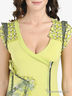 Детали: V-образный вырез горловины с декоративным запахом, короткий хлопковый рукав, контрастные вставки, кармашек, множество декоративных элементов
