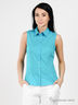 Элегантная блуза приталенного силуэта. Выполнена из приятного на ощупь хб материала. Отложной воротник-стойка. Без рукавов. Спереди застежка на пуговицы.