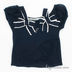 Нетрадиционная и модная блуза выполнена из вискозного трикотажа. Рукава - фонарики, широкие лямки декорированы изящными бантами, стразы в в виде буквы F - логотипа бренда изящно завершают изделие. Модная и стильная блуза станет отличным дополнением любого образа.