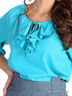Блуза с рукавами 3/4 и округлым вырезом горловины. Модель свободного кроя декорирована спереди рюшами. Отличный вариант для создания стильного повседневного образа.