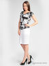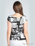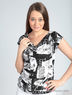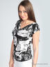 Блуза с вырезом горловины "качели". Короткие рукава. Ткань с принтом. Полуприлегающий силуэт, длина до линии бедер.