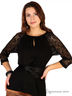 Блуза с рукавами 3/4 и округлым вырезом горловины. Рукава выполнены из качественного, полупрозрачного материала привлекательной расцветки. Свободный крой не сковывает движений. Отличный вариант на каждый день.