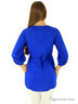 Очаровательная блузка с рукавами 3/4 и фигурным вырезом горловины. Модель свободного покроя. Дополнена застежкой на пуговицы. Прекрасный вариант для создания утонченного образа.