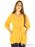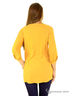 Стильная блуза с рукавами 3/4 и округлым вырезом горловины. Модель приталенного покроя за счет пояса, дополнена застежкой на пуговицы и накладными карманами. Выполнено изделие в яркой однотонной расцветке. Отличный вариант на каждый день.