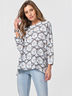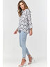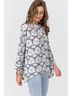 • Особенности: Блуза свободного А-образного силуэта из блузочной ткани. Детали: горловина обработана бейкой, спущенная линия плеча, втачной рукав с притачной манжетой, фигурная линия низа. Застежка по переду на петли-пуговицы.