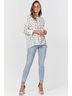 • Особенности: Блуза свободного А-образного силуэта из блузочной ткани. Детали: горловина обработана бейкой, спущенная линия плеча, втачной рукав с притачной манжетой, фигурная линия низа. Застежка по переду на петли-пуговицы.