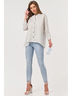 Особенности: Блуза свободного А-образного силуэта из блузочной ткани. Детали: горловина обработана бейкой, спущенная линия плеча, втачной рукав с притачной манжетой, фигурная линия низа. Застежка по переду на петли-пуговицы.