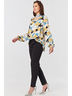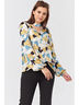 • Особенности: Блузка прямого силуэта из плотной шелковой ткани. Детали: спущенная линия плеча, широкий рукав со сборкой на резину по низу, горловина V-образной формы со стойкой типа чокер, разный уровень переда и спинки. Застежка по спинке на петлю-пуговицу.