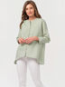 Особенности: Блуза свободного А-образного силуэта из блузочной ткани. Детали: горловина обработана бейкой, спущенная линия плеча, втачной рукав с притачной манжетой, фигурная линия низа. Застежка по переду на петли-пуговицы.