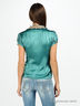 В стильной блузе Вы будете чувствовать себя комфортно и легко как в офисе, так и на вечеринке. Нежная атласная ткань. Короткий рукав-фонарик. Застегивается на пуговицы. Декорирована рюшами и завязкой из шифона. На спине вышивка в виде логотипа бренда.