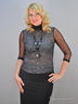 Элегантная вечерняя блуза приталенного покроя. Воротник-стойка. Облегающие укороченные рукава. Полочки выполнены из оригинальной рельефной ткани. Рукава и спинка выполнены из прозрачной черной ткани.