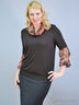 Элегантная блуза с широким округлым воротом. Укороченные рукава. Отрезной пояс. Изделие свободного покроя.