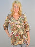 Детали: v-образный вырез горловины присборен на металлическое кольцо, укороченный прямой рукав присборен на манжету