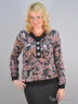 Стильная блуза из приятной на ощупь вискозной ткани. Округлый вырез горловины. Ворот дополнен декоративным разрезом с пуговицами. Длинные прямые рукава на манжетах. Ворот с разрезом, манжеты и низ изделия выполнены из однотонной черной ткани.
