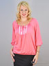 Детали: округлый вырез горловины, укороченный рукав присборен на ленту, низ изделия на кулиске с лентой, полочка декорирована тесьмой