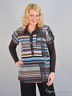 Эффектная блуза свободного покроя. Воротник-стойка с отложным воротником и разрезом, дополненным пуговицами. Рукава декорированы шлевками.