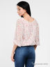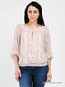Детали: округлый вырез горловины, застежка на пуговицы. Рукава с манжетами. Вырез горловины и низ присборены. Модель декорирована кружевной тесьмой.