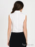 Обворожительная блуза приталенного силуэта. Выполнена из приятного на ощупь хб материала. Отложной воротник-стойка. Без рукавов. Застежка на пуговицы. Прекрасно подойдет под классические брюки!