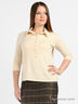 Повседневная блуза приталенного силуэта. Выполнена из эластичного материала. Отложной воротник. Рукава 3/4. Спереди застегивается на пуговицы. Прекрасный универсальный вариант!