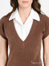 Повседневная блуза приталенного силуэта. Выполнена из приятного на ощупь материала кашкорсе. V-образный вырез горловины. Короткие рукава. Прекрасно сочетается с любыми по фасону и фактуре вещами!