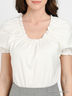 Легкая блуза свободного силуэта. Выполнена из приятного на ощупь хб материала. Округлый вырез горловины. Короткие рукава-фонарики. Вырез и рукава посажены на резинку. Будьте неповторимой каждый день!