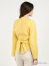 Стильная блуза из тонкой льняной ткани. V-образный вырез горловины с лацканами. Длинные прямые рукава. Полочка выполнена с запахом, закрепляющимся широкими лентами. Изящный вариант на каждый день!