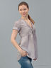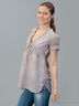 Блуза с короткими рукавами и глубоким вырезом декольте. Изделие свободного покроя прекрасно скрывает недостатки фигуры. Отличный вариант на каждый день.