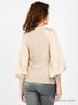 Элегантная блуза из тонкого, приятного на ощупь материала. V-образный вырез горловины. Длинные свободные рукава-реглан с узкими манжетами. Полочка и спинка выполнены из мягкого трикотажа. Низ изделия, манжеты и ворот выполнены из рельефной рибаны.