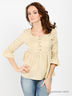 Элегантная блуза из тонкого, мягкого хлопкового материала. Широкий округлый вырез горловины. Застежка на планку с пуговицами и на потайную молнию в боковом шве. Укороченные прямые рукава с расклешенными манжетами. Полочка декорирована вертикальными защипами и вышивкой. Отрезной лиф. Расклешенная нижняя часть изделия.