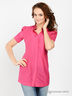 Стильная юркая блуза из тонкого, мягкого полухлопкового батиста. Ворот-стойка декорирован рюшей и серебристой цепочкой. Короткие рукава-фонарики с манжетами на пуговицах. Застежка на планку с пуговицами.