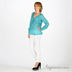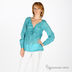 Блуза хлопчатобумажная рубашечного кроя. Короткий рукав с манжетой, застегивается на пуговичку. Планка-застежка на пуговицах декорирована рюшами. Приталенный силуэт.