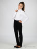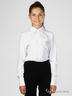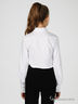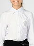 Трикотажная блуза из приятного на ощупь материала белого цвета. Отложной воротник на стойке. Застегивается на планку с пуговицами украшенными стразами. Рукава с манжетами на пуговицах. На полочке накладной карман с вышивкой.