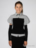 Оригинальная трикотажная блузка с имитацией двойки. Отложной воротник на стойке. Короткие рукава-волланы. На полочке планка-застежка на пуговицах. Кокетка и рукава выполнены из легкого хлопка в мелкую черно-белую клетку. В комплект входят трикотажные рукава в цвет изделия.