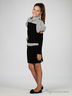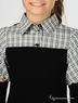 Оригинальная трикотажная блузка с имитацией двойки. Отложной воротник на стойке. Короткие рукава-волланы. На полочке планка-застежка на пуговицах. Кокетка и рукава выполнены из легкого хлопка в мелкую черно-белую клетку. В комплект входят трикотажные рукава в цвет изделия.