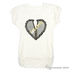 Трикотажная футболка для девочки свободного покроя. Круглая горловина. Короткие цельнокроеные рукава с манжетами. На полочке золотистая нашивка, декорированная кружевом.