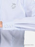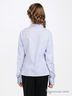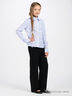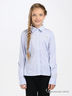 Приталенная модель с отложным воротом застегивается на пуговицы по всей длине изделия. Манжеты на пуговицах. Фигурные вытачки. Полочка украшена декоративными металлическими элементами.