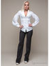 Стильная блуза приталенного силуэта. Отложной ворот с лацканами, длинный рукав на манжете, застежка на пуговицы. Декорирована защипами и пуговицами на спине. Для уверенных в себе!