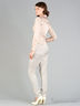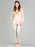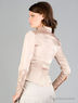 Классическая блузка приталенного кроя. Из приятного на ощупь материала. Отложной воротник-стойка, длинные рукава с манжетами на пуговицах, полочка украшена многослойными воланами.