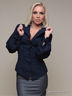 Стильная блуза приталенного силуэта. Отложной ворот с лацканами, длинный рукав на манжете, застежка на пуговицы. Декорирована защипами и пуговицами на спине. Для уверенных в себе!