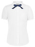 Если вы хотите купить школьную блузку для девочки, не ограничивайте свой выбор блузками с длинным рукавом. Красивые блузки для школы могут быть разными! Блузка с коротким рукавом - прекрасный вариант для жарких классов. С жакетом или кардиганом, белая школьная блузка для девочек будет выглядеть стильно, красиво, достойно. Белая элегантная блузка с рукавом "фонарик" и отстегивающимся контрастным репсовым бантом, сделает образ школьницы нежным, свежим, деликатным.
