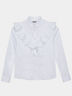 Строгая белая блузка в школьном гардеробе девочки - изделие из разряда must have! И в будние дни, и на торжественных мероприятиях, нарядная белая блузка подчеркнет деловой стиль и элегантность ученицы. Блузка чуть приталенного силуэта с воротником-стойкой, эффектной крупной рюшей и кружевом - отличное приобретение в преддверии учебного года. Дизайн модели подчеркнет нежный романтичный стиль девочки. С любыми брюками, юбкой, жакетом, блузка составит красивый комплект, став выразительным акцентом образа школьницы.