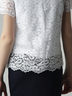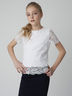 Белая кружевная блузка с коротким рукавом - универсальный вариант. Она выглядит очень нарядно и элегантно, при этом максимальна проста в эксплуатации и уходе. Благодаря трикотажной основе из хлопка с эластаном, блузка очень комфортна и приятна к телу. Кружево делает блузку благородной, идеальной и для будней, и для праздников ученицы. С любой юбкой, брюками, блузка составит красивый элегантный комплект, подчеркивающей утонченность девочки.